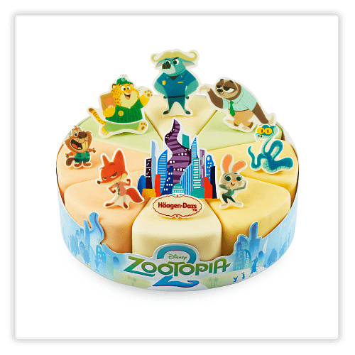 與尼克與茱蒂及動物方城市的好朋友們,一同踏上甜蜜冒險! 精選4 款哈根達斯冰淇淋口味,搭配繽紛角色設計, 不論是生日派對或節日聚會,都是全場最亮眼的焦點。